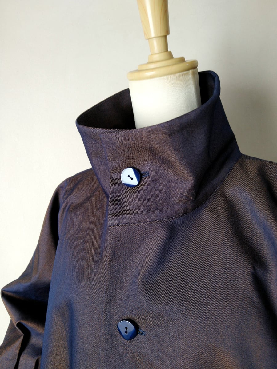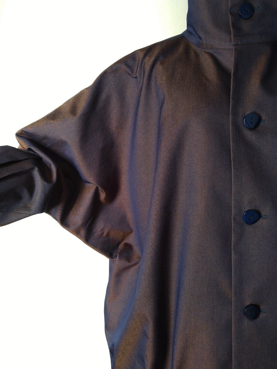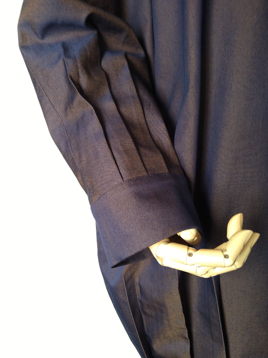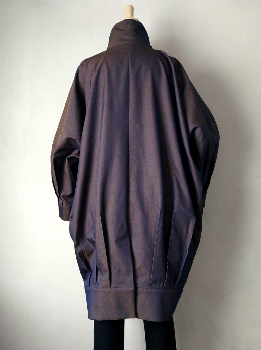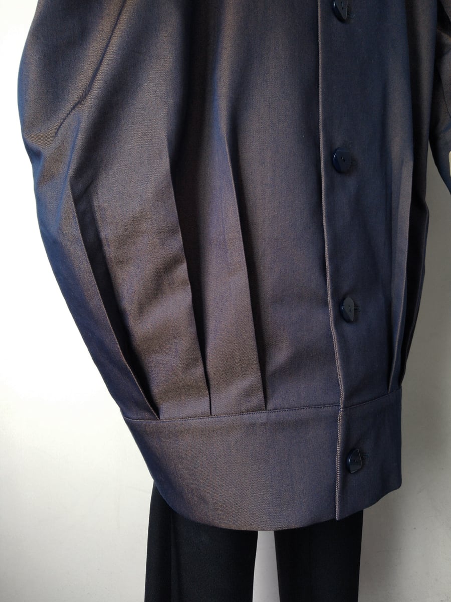 裾と袖口でタックを取り、たっぷりとした身頃を立体的に構築
